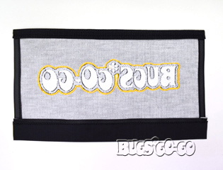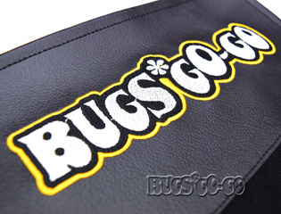 BUGS GO-GOロゴの刺しゅうが施されたPVCビニールレザー製のカバーです。