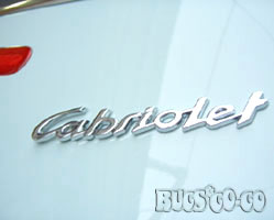 直径145mmサイズのCabrioletロゴクロームエンブレムです。ABSプラスティック製で多少のアール(曲面)部分でも
